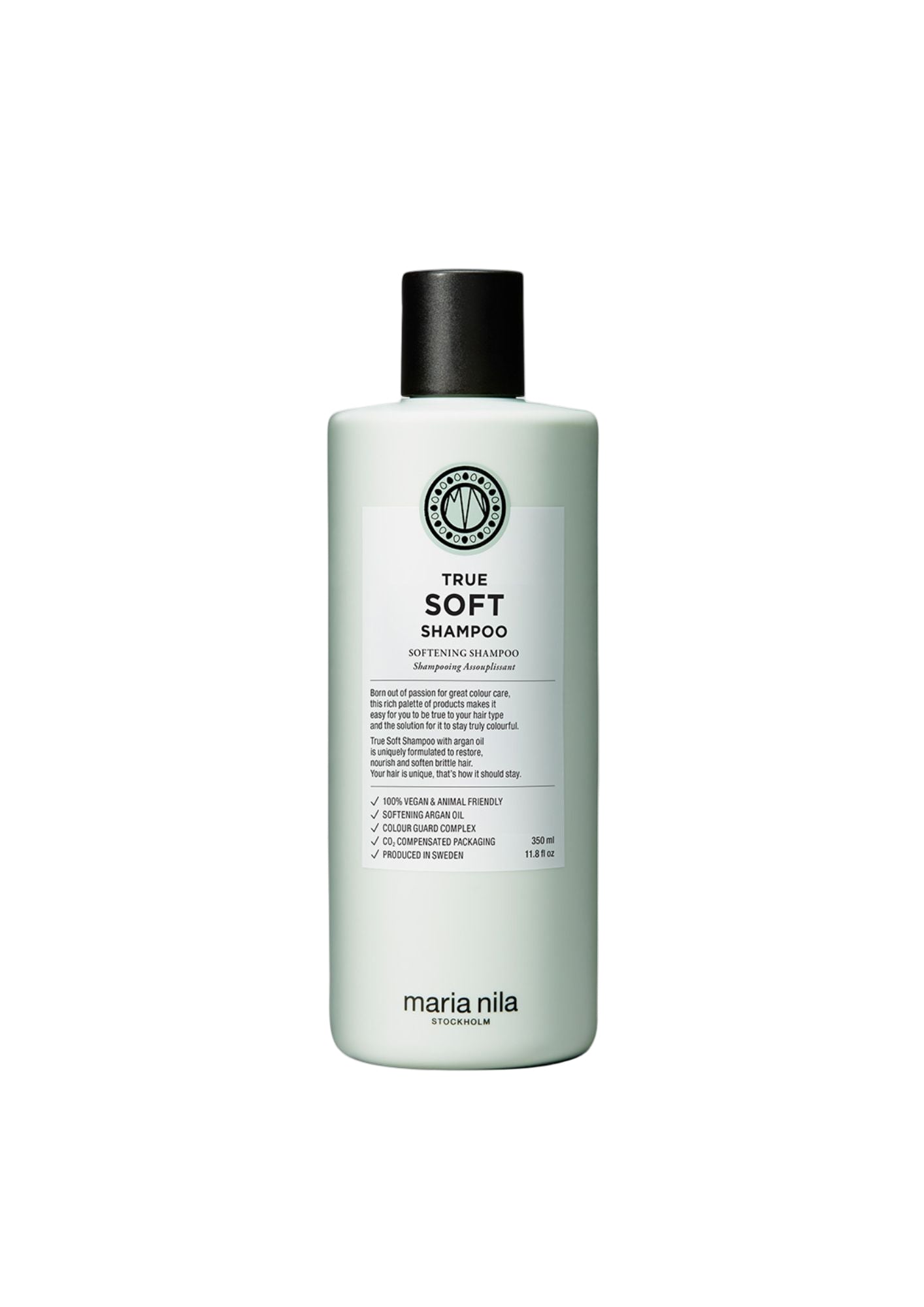 True Soft Shampoo er en nærende shampoo, specielt udviklet til naturligt tørt hår. Den tilfører intens fugt, blødgør og styrker håret samtidig med, at frizz og statisk elektricitet reduceres. Beriget med glansgivende arganolie, antioxidanter og essentielle fedtsyrer, som bevarer fugten og giver håret en sund og strålende glød.